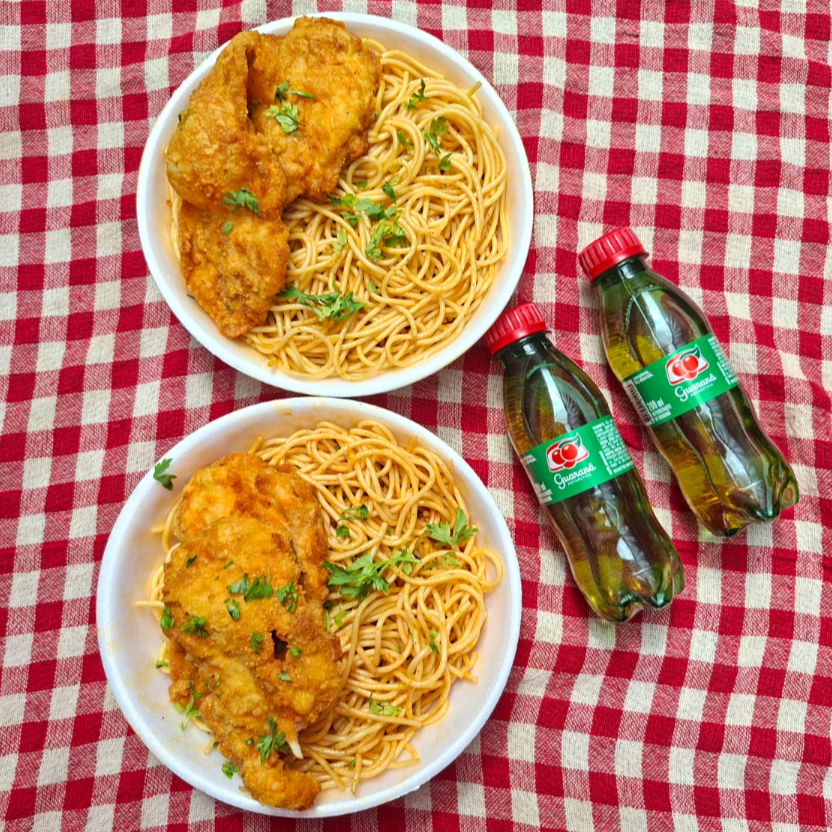 2 Espaguete + Refri Gratis Frango Empanado