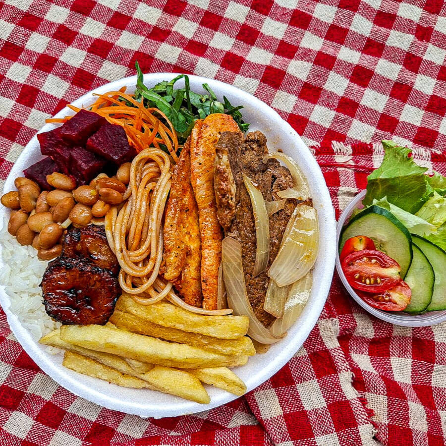 Bife De Bovino + File De Frango Fritas Arroz Feijão Macarrçao Salada