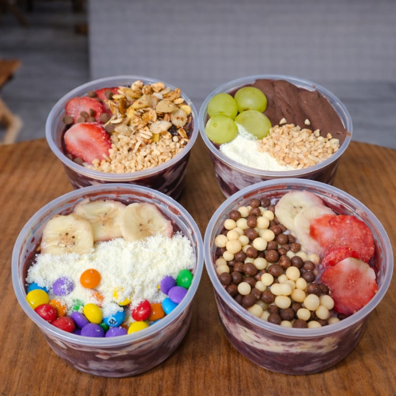 4 Mini Açai Com Banana Leite Condensado Leite Em Po Granola Chocoball