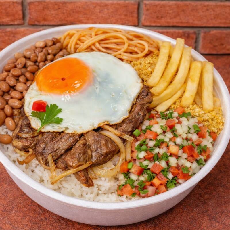 Bife Bovino A Moda Da Casa Com Vinagrete Arroz Feijão Fritas Macarrão Ovo Farofa