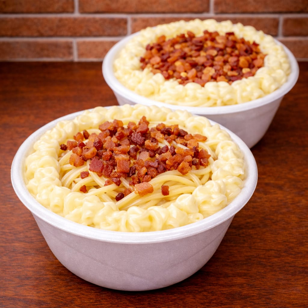 Dois Macarrao Molho Branco Bacom E Queijos