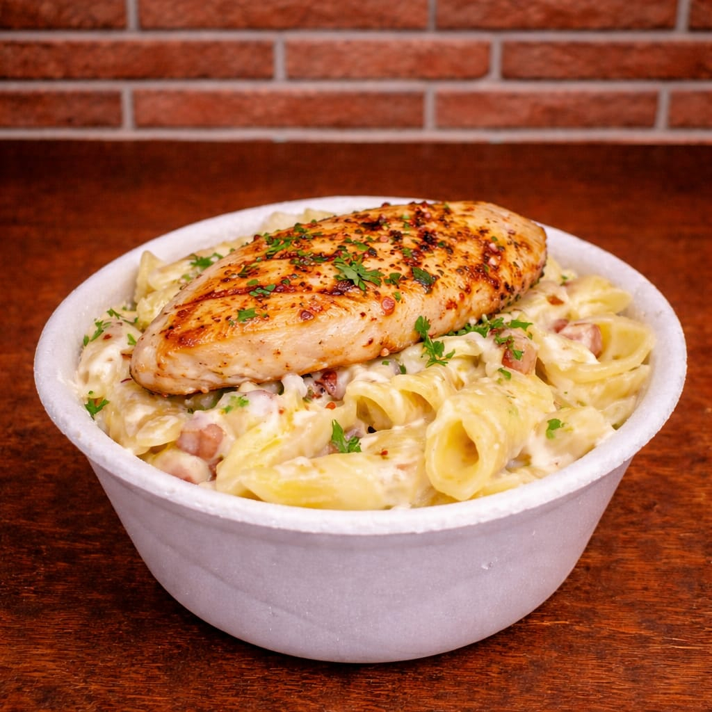 Macarrao Chicken Frango Queijo Mussarela Molho Branco