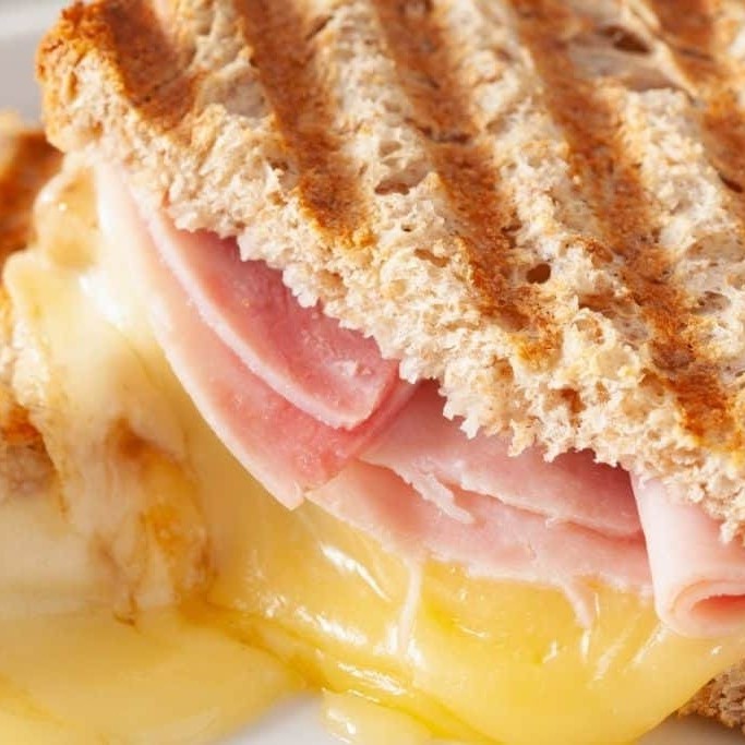 Pão de forma, manteiga, presunto, mussarela, tomate e alface