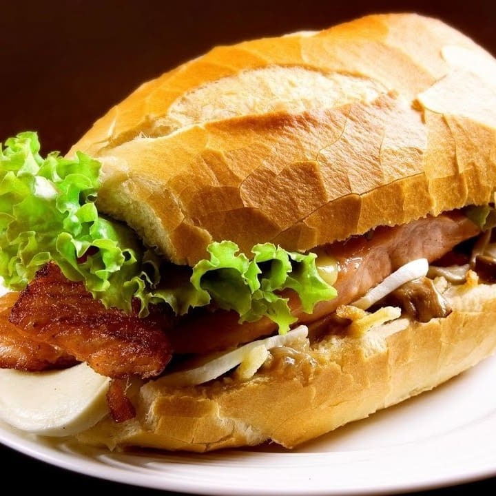 Pão, presunto ,mussarela, ovo, salsicha, hambúrguer, bacon, alface e tomate.