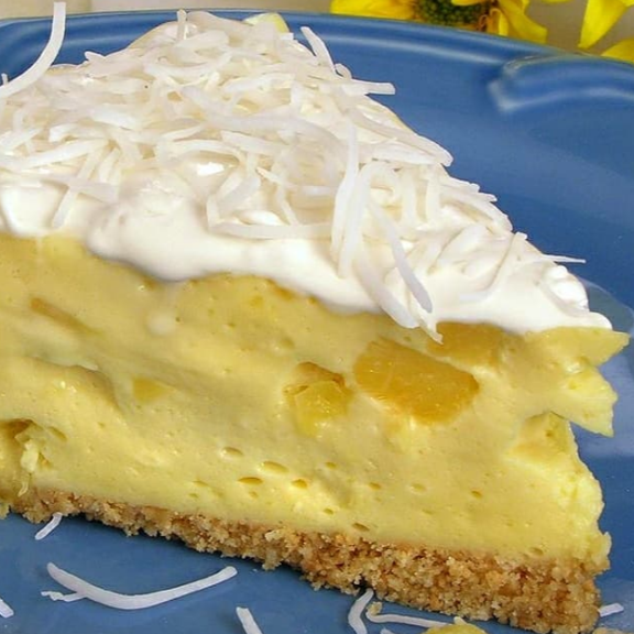 Delicioso pedaço de torta de abacaxi com creme de leite ninho cremoso
