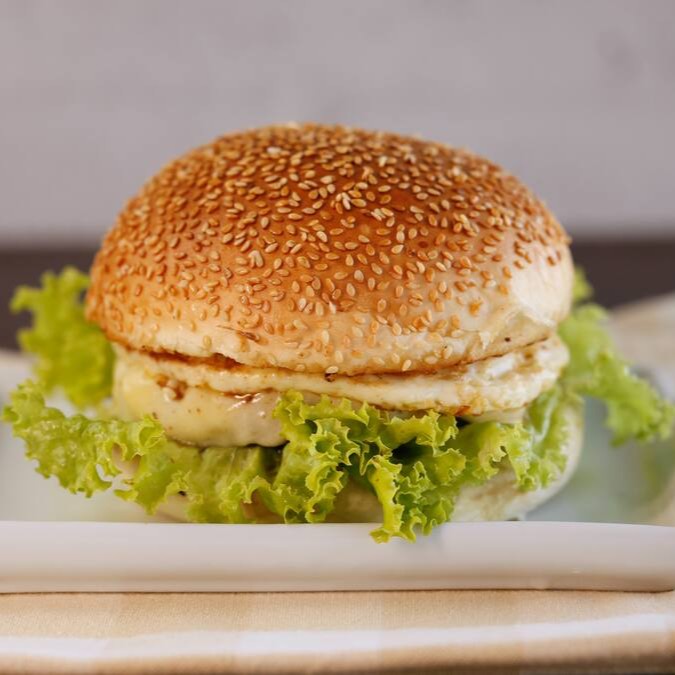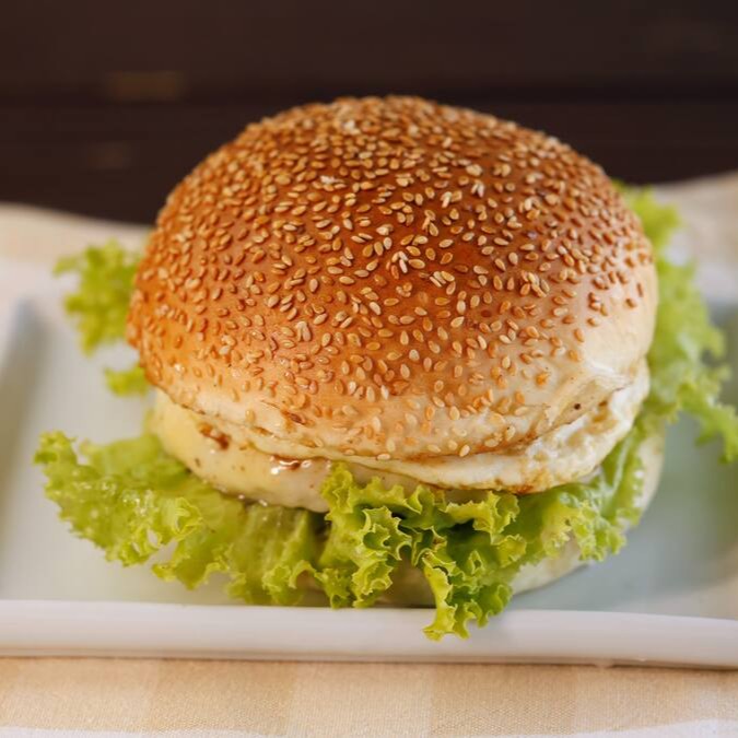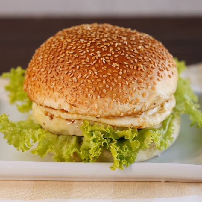 Pão, hambúrguer, queijo, ovo, alface e tomate