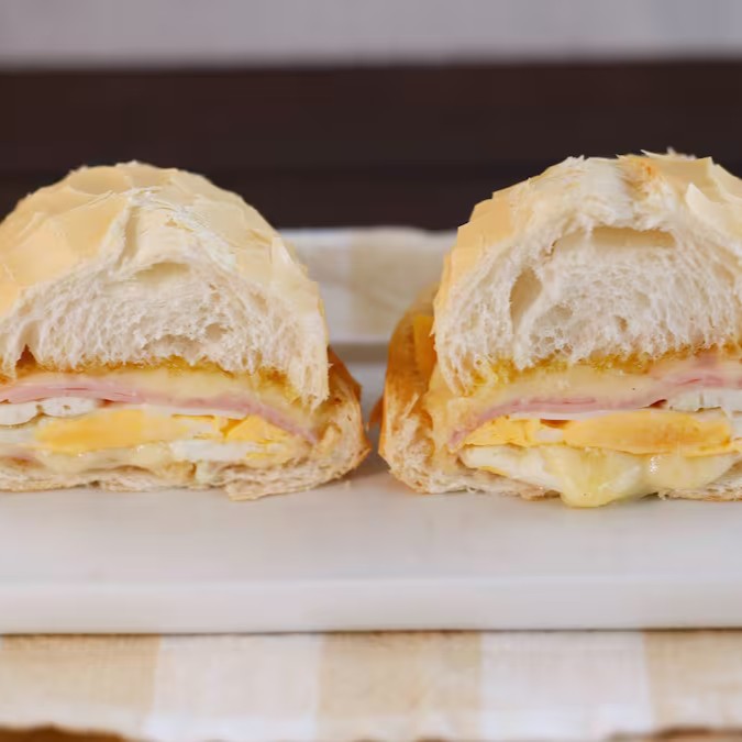 Pão Francês, Presunto, Queijo Muçarela e Ovo