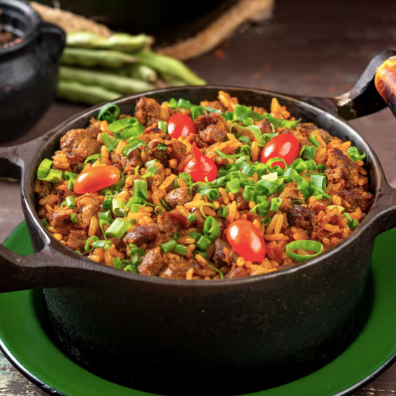 Arroz, carne de sol desfiada, queijo de coalho, feijão de corda, tomate, pimentões coloridos e manteiga do sertão. 1200g