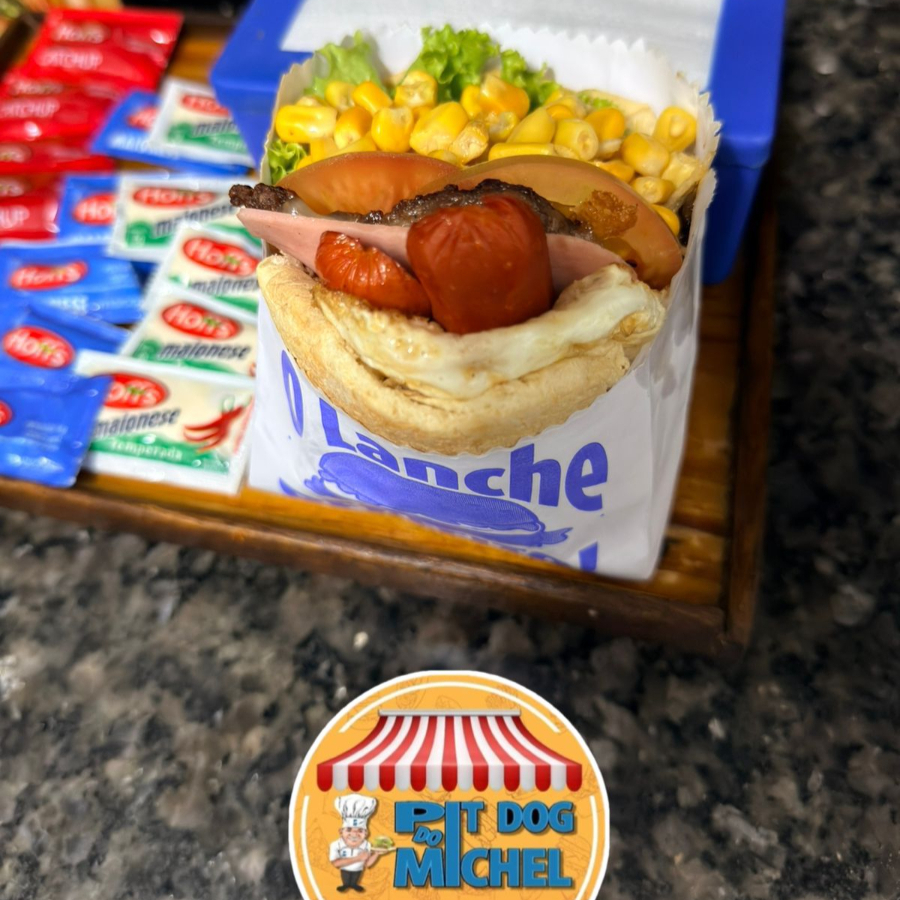 2 Hambúrguer, 2 Presunto, 2 Mussarela, 2 Bacon, 2 Ovo, 2 Salsicha, Milho, Batata, Alface, Tomate.