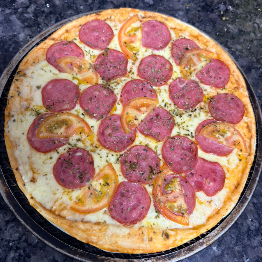 Presunto, Mussarela, Bacon, Ovo, Salsicha, Milho, Batata, Alface, Tomate.
