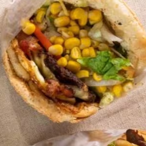 Pão Sírio, 2 Contra Filé Gg, 4 Queijos, Orégano, azeite e salada.
