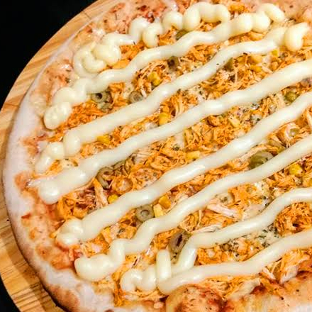 Mussarela, frango, catupiry e oregano.