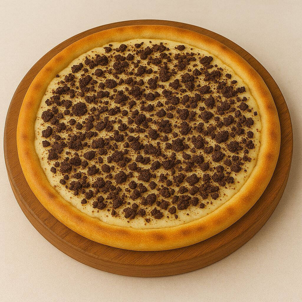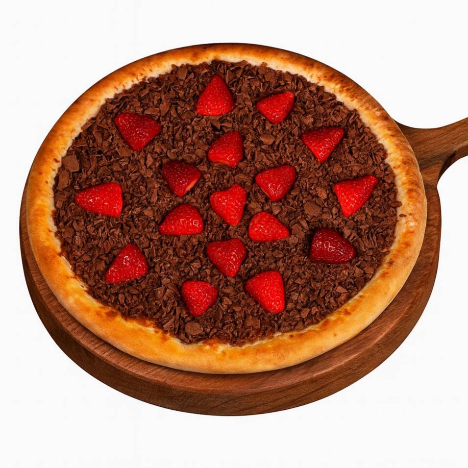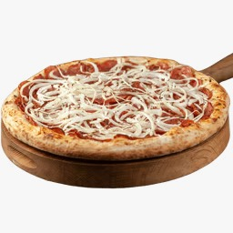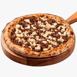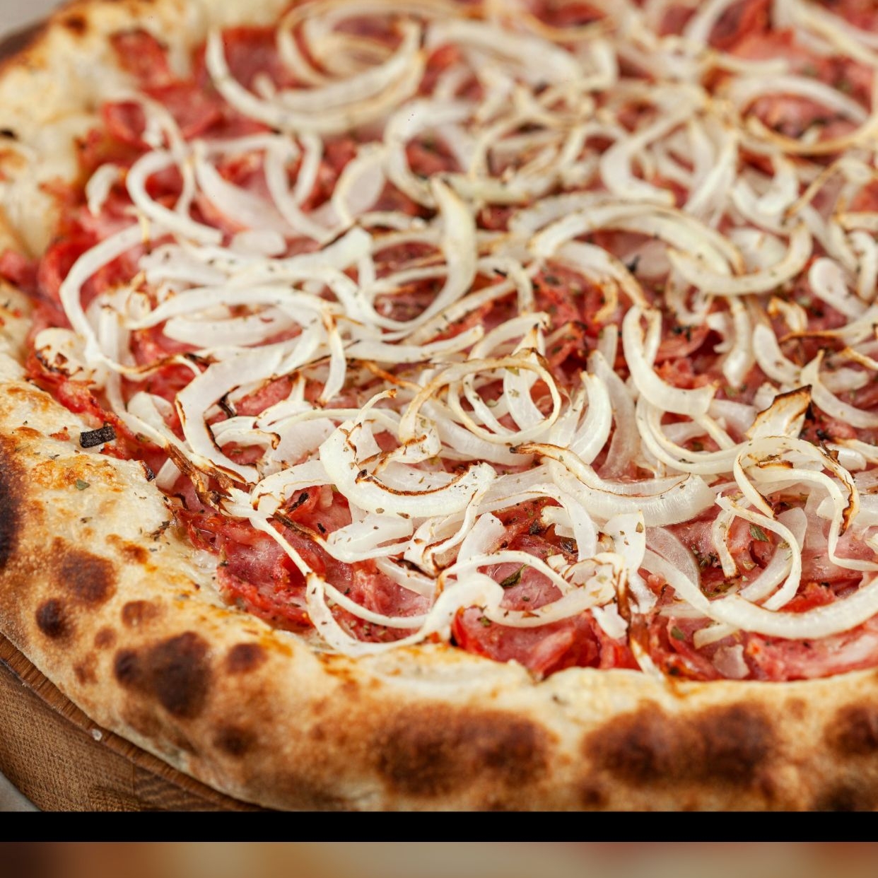 Molho, Mussarela, Calabresa, Cebola, + Doce de brinde chocolate preto e branco