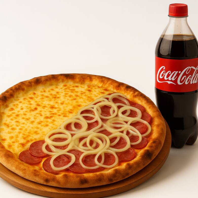 Molho, Mussarela, Calabresa, Cebola, Oregano + Refri 600ml Gratis