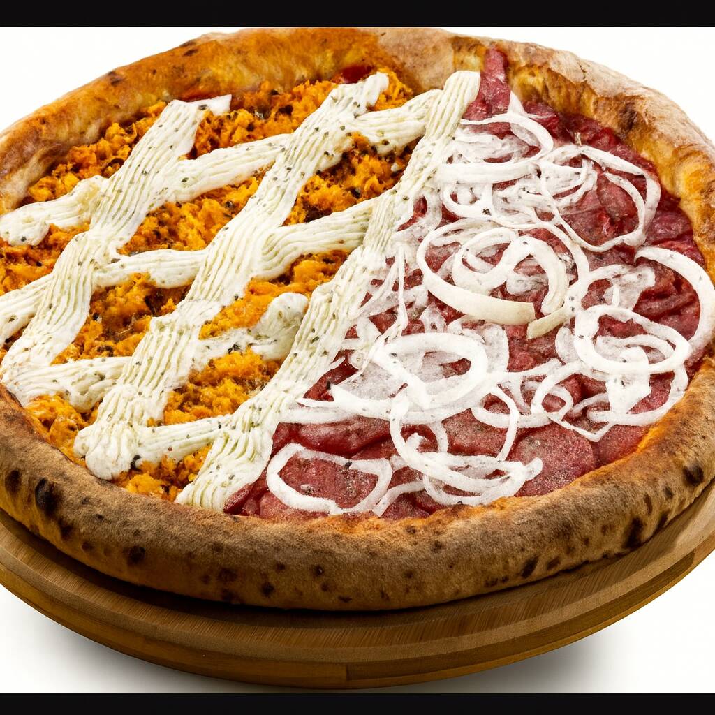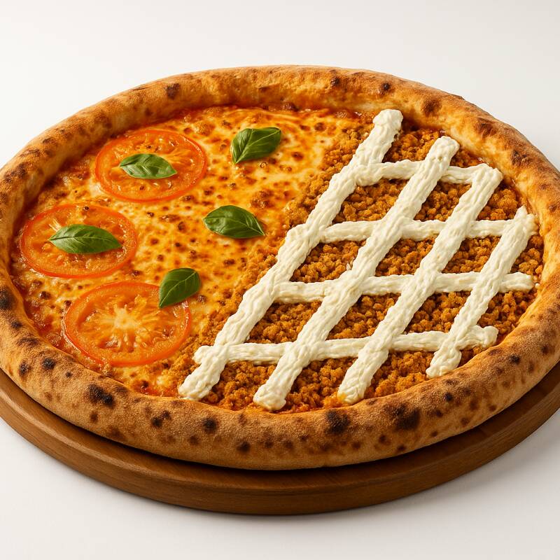 Pizza Grande Frango Catupiry 1/2 Marguerita 35 cm 8 pedaços