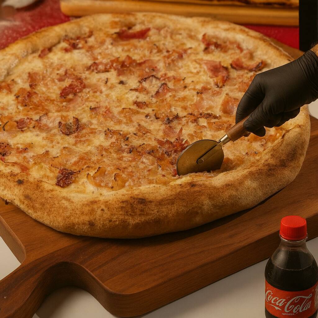 Molho, Mussarela, Bacon, Creme de leite, Parmesâo, Oregano + Refri 600ml