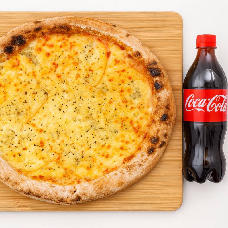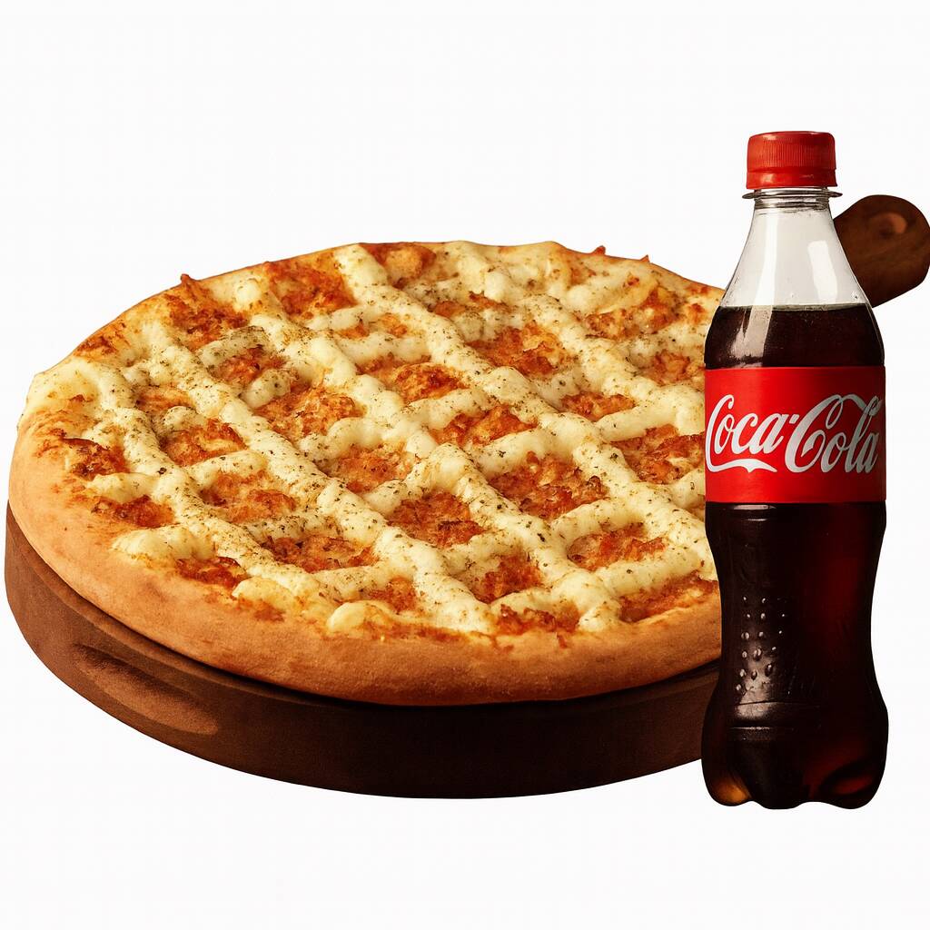 Molho, Mussarela, Catupiry, Provolone, Parmesâo, Oregano + Refri 600ml Gratis