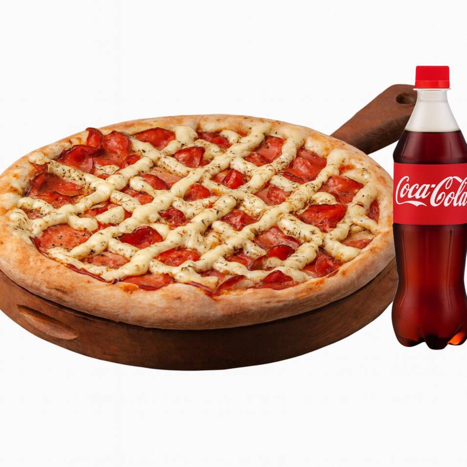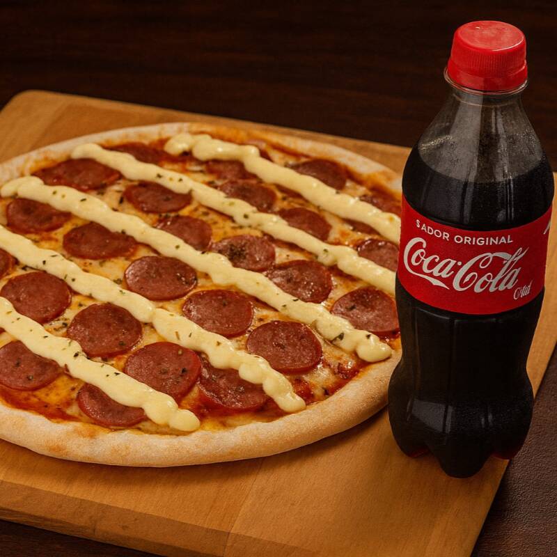 Molho, Mussarela, Calabresa, Catupiry, Oregano, + Refri 600ml Gratis