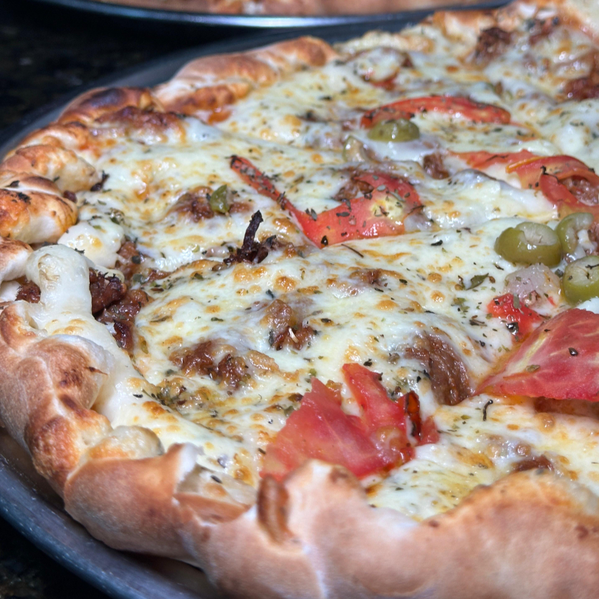 Azeitona, Bacon, Lombo, Molho Especial, Muçarela, Orégano, Provolone, Tomate