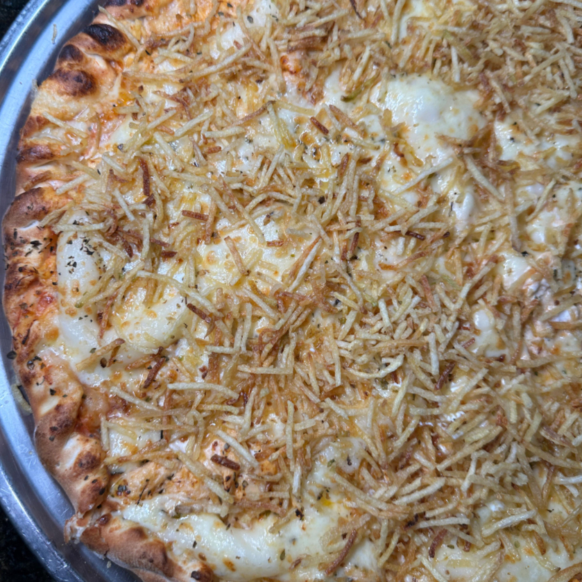 Azeitona, Batata Palha, Molho Especial, Muçarela, Orégano, Requeijão Tipo Catupiry, Strogonoff de Frango