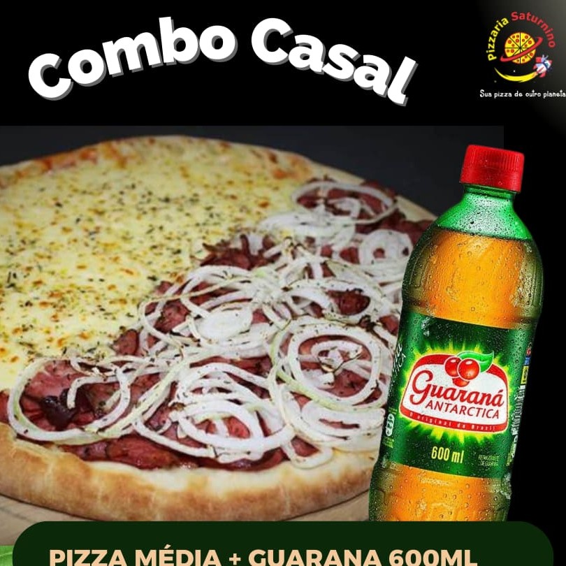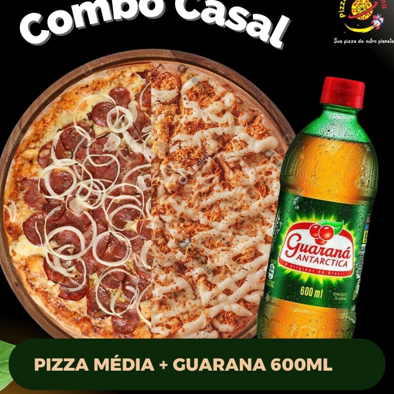 1 Pizza Média com 6 pedaços (30cm) sendo metade no sabor de Calabresa acebolada e a outra metade no sabor de Muçarela bem cremosa e para acompanhar uma Guaraná Antarctica 600ml Tradicional super gelada esperando você pedir!