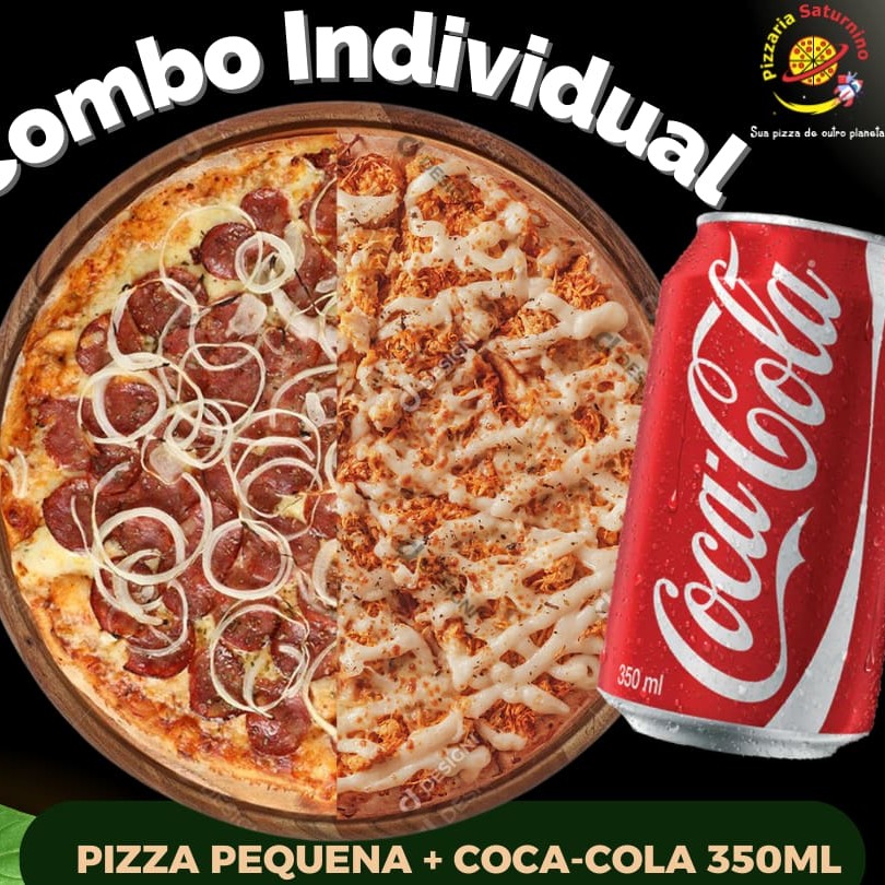 1 Pizza pequena com 4 pedaços (25cm) sendo metade no sabor de Calabresa acebolada e a outra metade no sabor de Muçarela bem cremosa e para acompanhar uma Coca-Cola 350ml super gelada esperando você pedir!