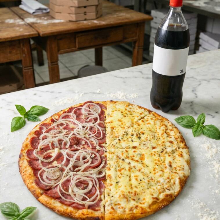 Pizza Calabresa E Mussarela (grande) + Refrigerante 2l Promoção!