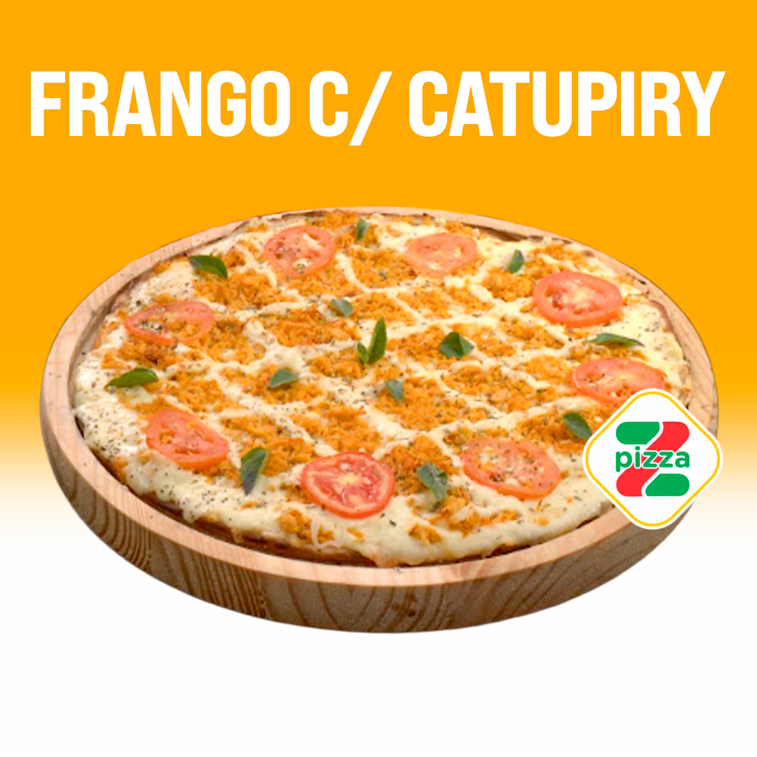 Massa-Molho-Mussarela-Frango Desfiado-Catupiry-Tomate-Orégano-Manjericão