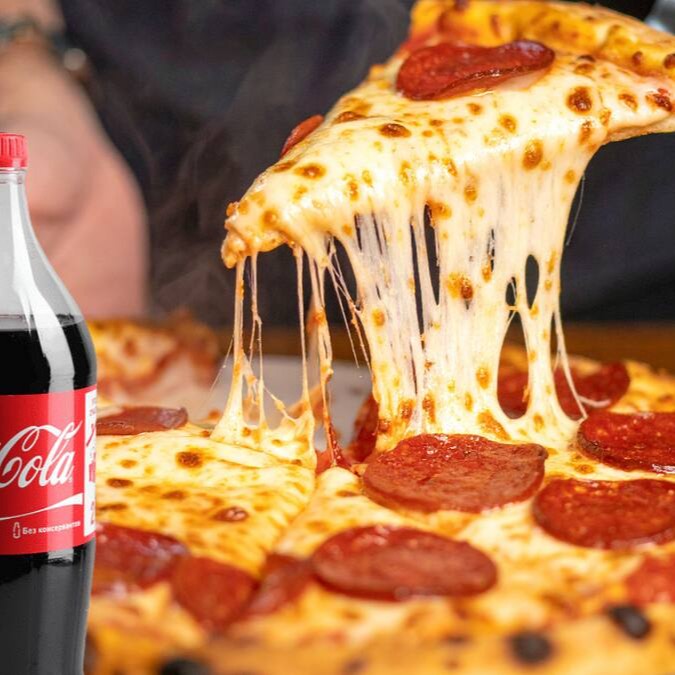 Escolha 2 Sabores Irresistíveis em Uma Pizza Grande Com 8 Fatias Bem Servidas, Acompanhada de Coca-Cola Original 2l Gelada!