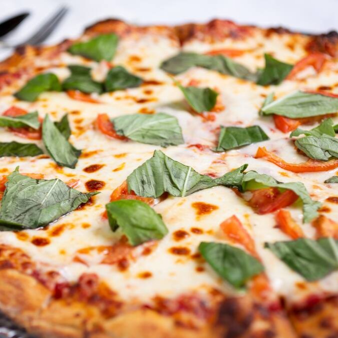 Muçarela, Tomate em Rodelas e Manjericão Fresco Sobre Molho de Tomate Especial. Leve, Aromática e Cheia de Sabor!