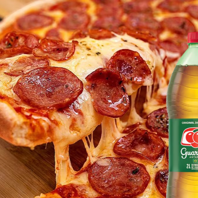 Escolha 2 Sabores Deliciosos em Uma Pizza Grande Com 8 Fatias Bem Servidas, Acompanhada de Guaraná Antarctica 2l Gelado!