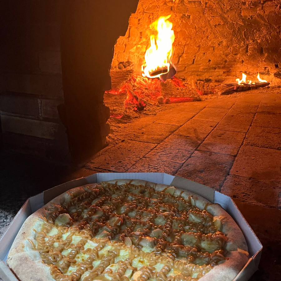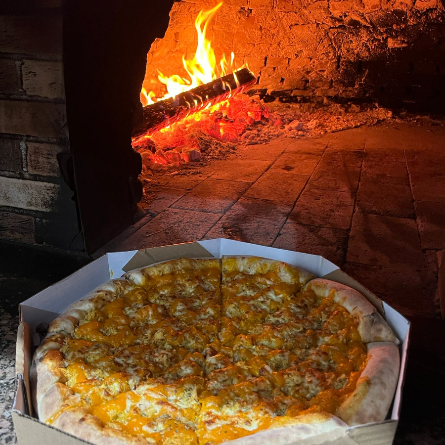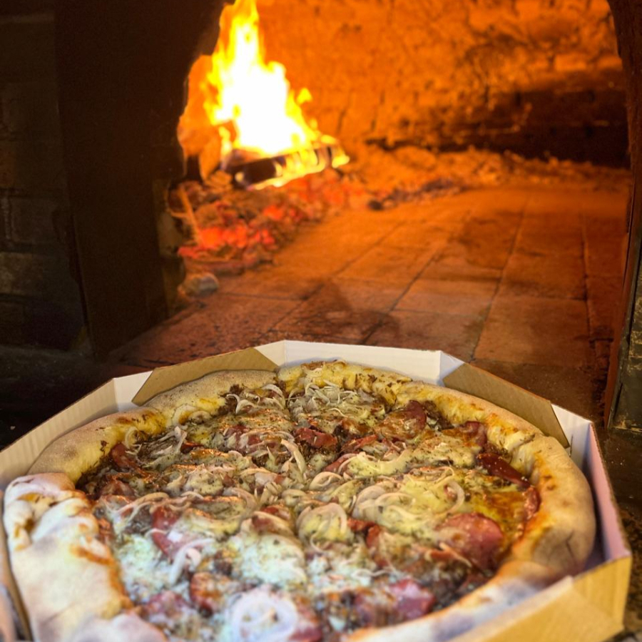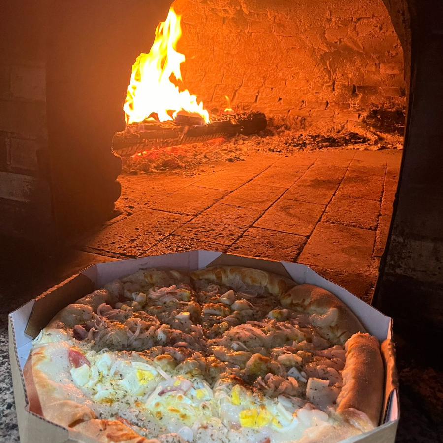 Molho, muçarela, calabresa, ovo, catupiry, cebola e orégano.