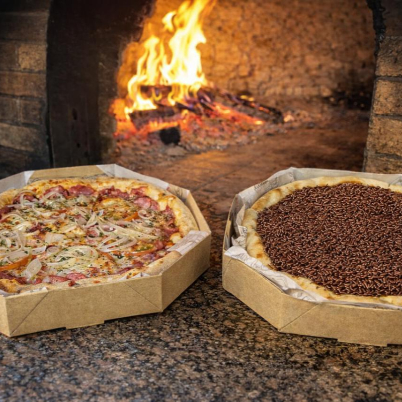 Promoção - Pizza Grande De Calabresa ( Com Borda Recheada) + Pizza Grande De Brigadeiro.