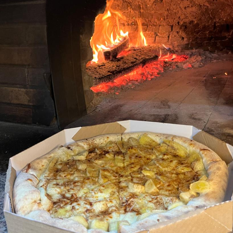 Pizza Grande De Calabresa (com Borda) + Pizza Grande Banoffe.
