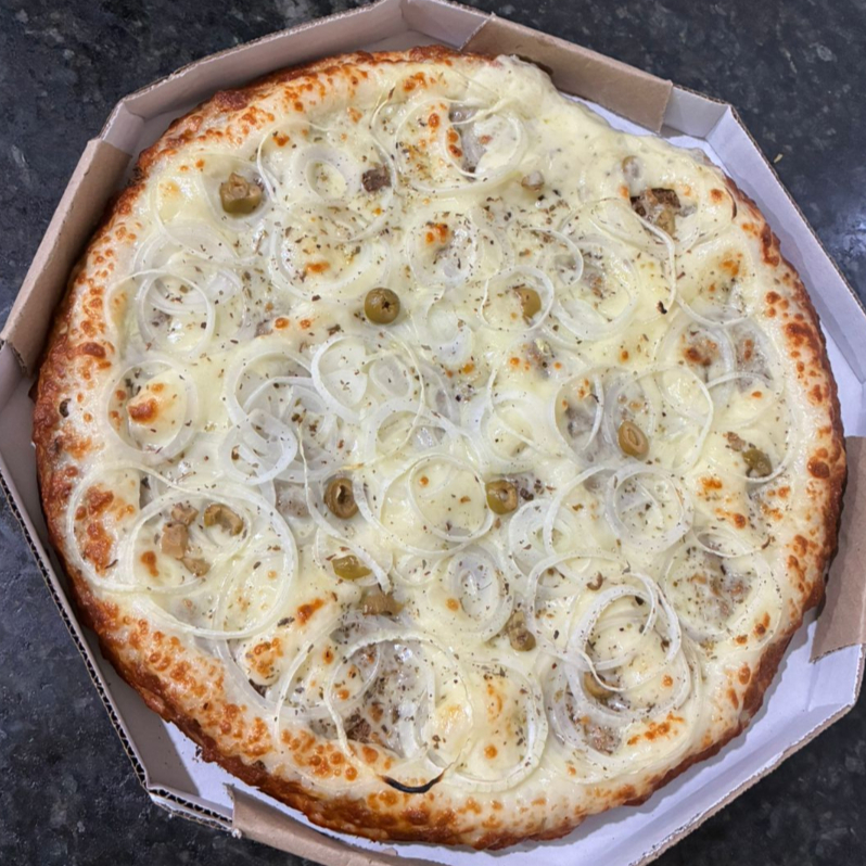 Molho, Mussarela, Calabresa, Catupiry, Cebola,Orégano e Azeitona.