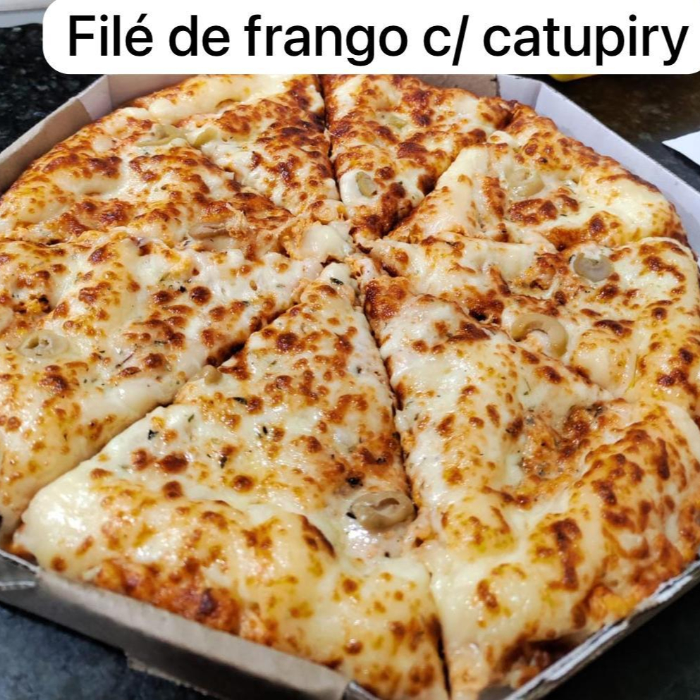 Molho, Mussarela, Frango Desfiado, Catupiry,Orégano e Azeitona.