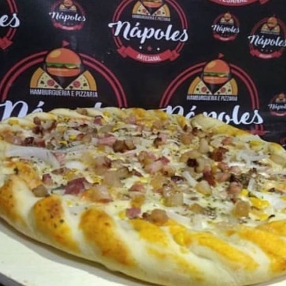 Molho napoles, mussarela, frango, bacon,milho,creme de leite oregano e azeitona