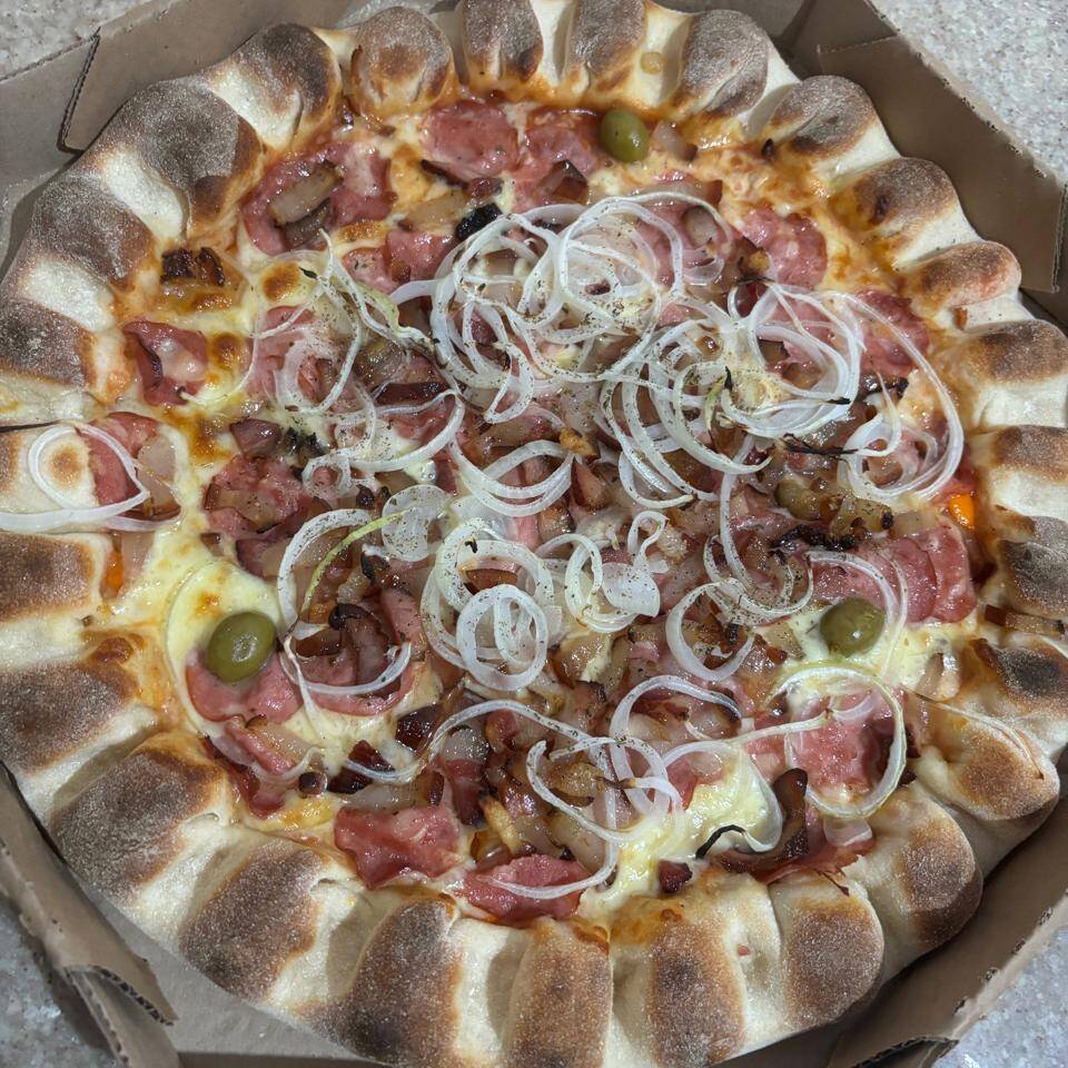 Pizza Grande 1 2 Calabresa 1 2 Bacon Cream Cheese..