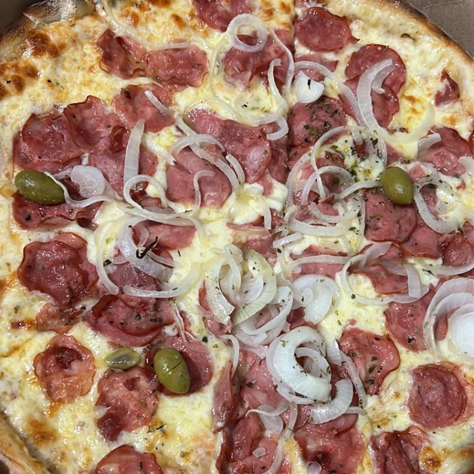 (Molho de tomate, mussarela, calabresa, cebola, azeitona e orégano)