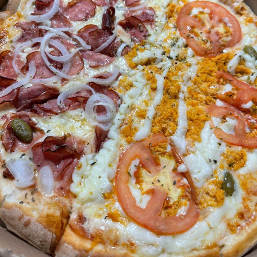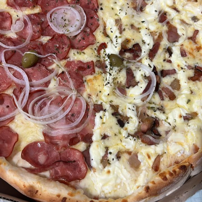 Pizza Grande 1 2 Calabresa 1 2 Bacon Cream Cheese