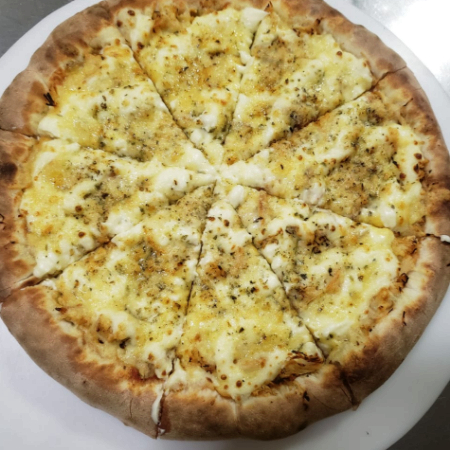 Massa artesanal, molho de tomate, mussarela, frango desfiado, requeijão cremoso e orégano