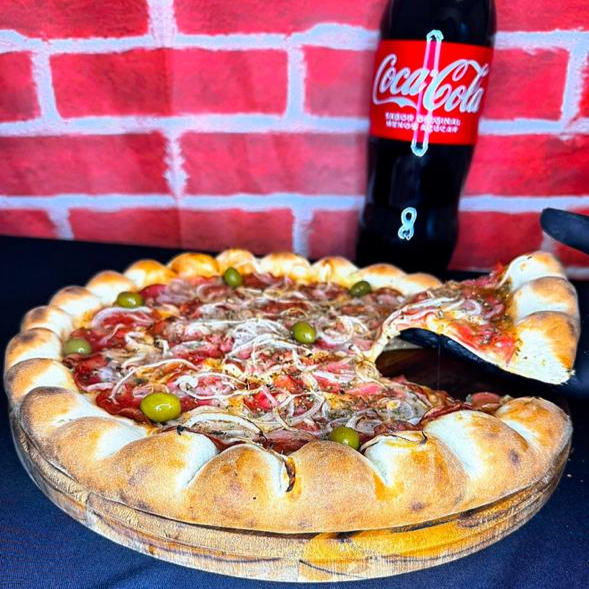 MOLHO,MUSSARELA, CALABRESA , CEBOLA , AZEITONA E OREGANO + BORDA GRATIS CATUPIRY+ COCA COLA 2 LITROS
