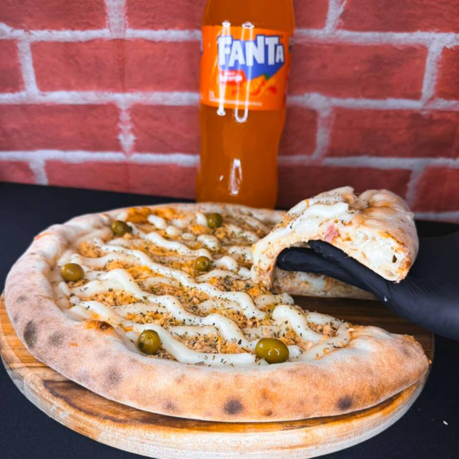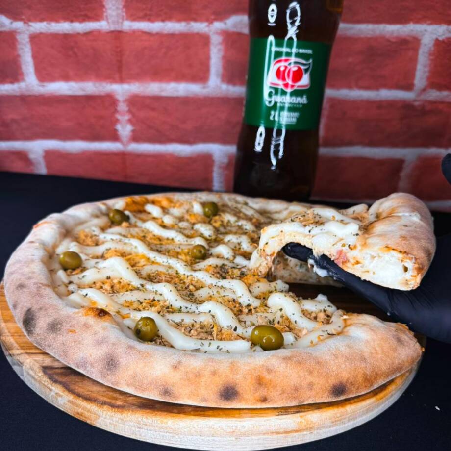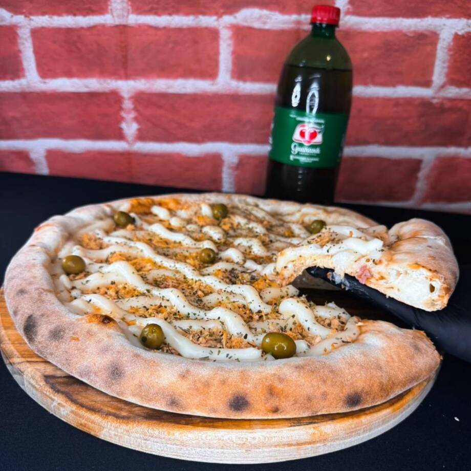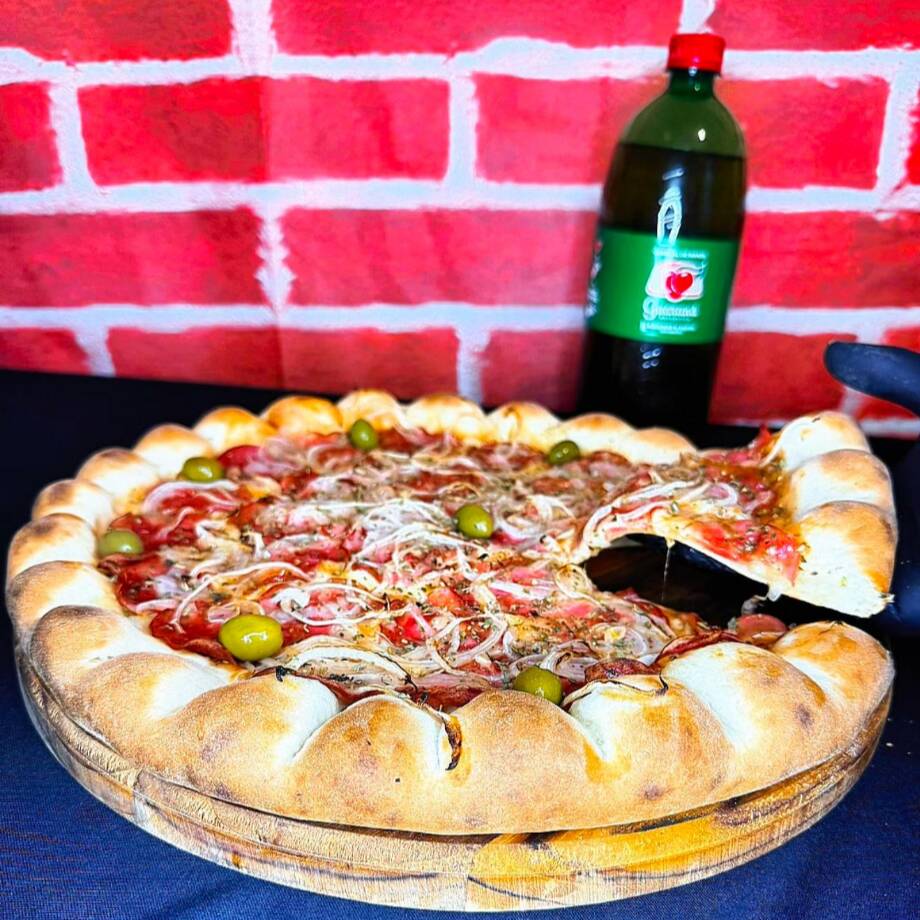 MOLHO, MUSSARELA, CALABRESA, CEBOLA, OREGANO, AZEITONA + BORDA CATUPIRY GRATIS + GUARANA ANTARTICA 2 LITROS