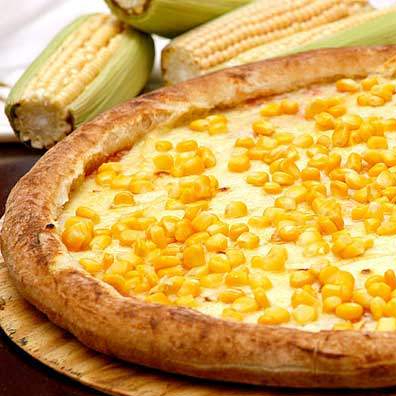 Molho de tomate, mussarela, milho e orégano