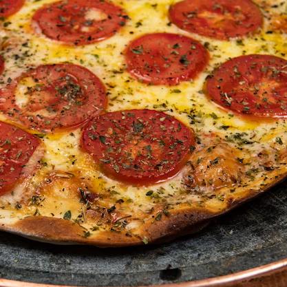 Massa artesanal , molho de tomate , mussarela , calabresa , oregano