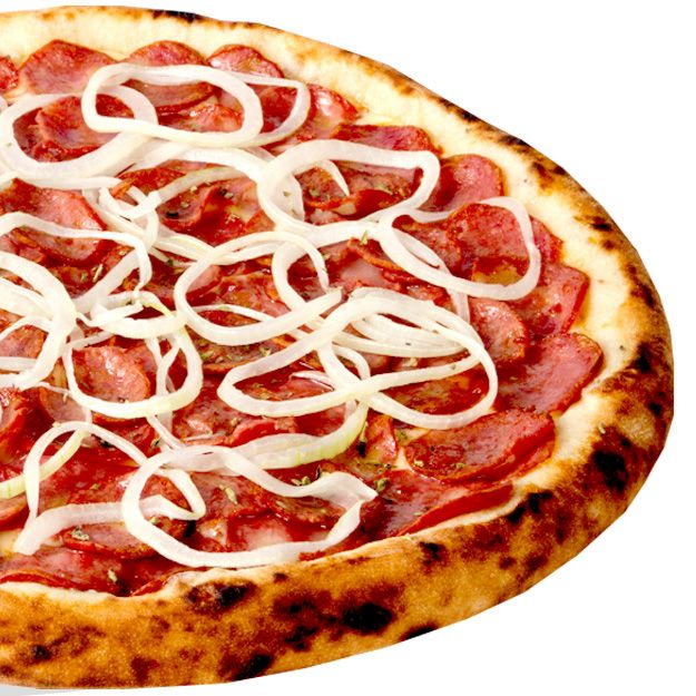 Molho de Tomate, Mussarela, Calabresa, Cebola, Azeitona e Orégano