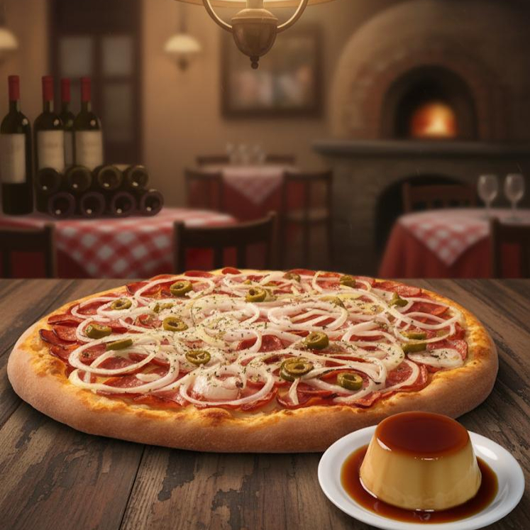 Pizza De Calabresa G + 1 pudim