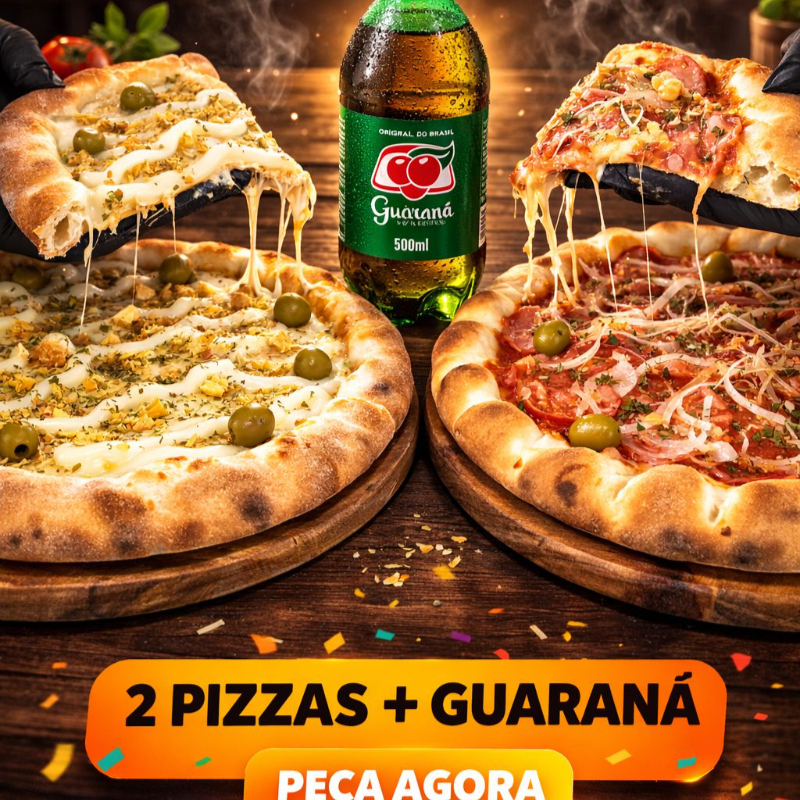 Promoçao Do Dia Pizza GRANDE DE FRANGO COM CATUPIRY + 1 CALABRESA COM CEBOLA + Borda Gratis De Catupiry + 1 GUARANA ANTARTICA 1 LITRO