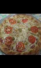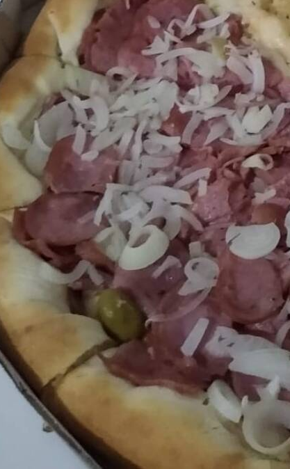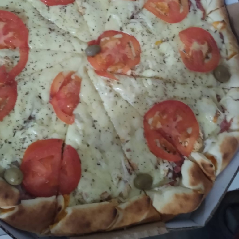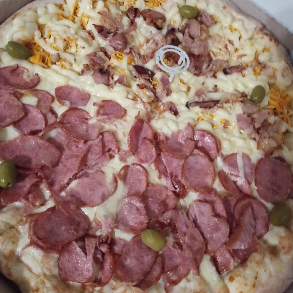molho,calabresa,mussarela,catupiry,bacon,oregano e azeitona