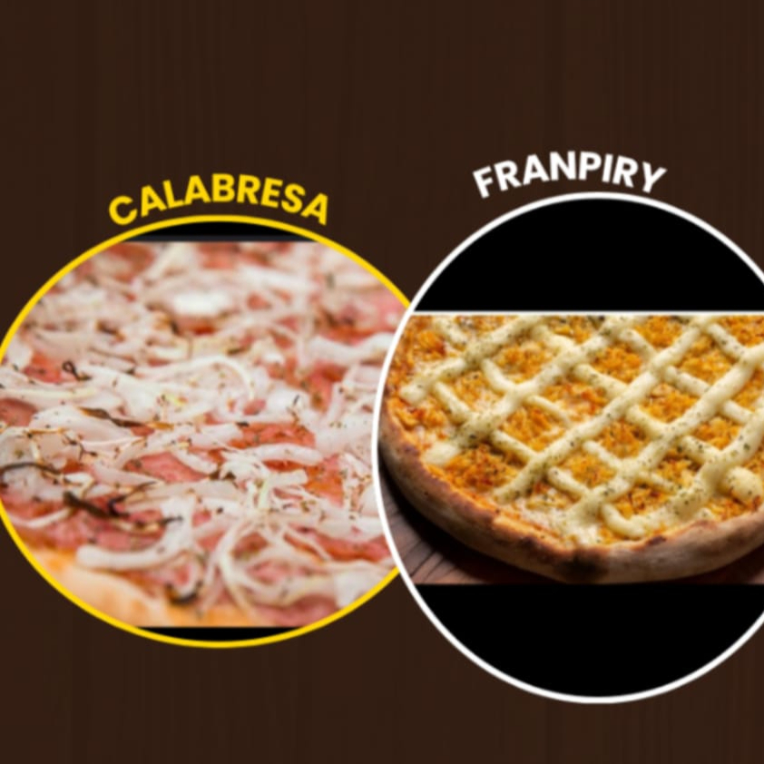 2 Pizzas(12 Fatias)1 Calabresa,1 Franpiry+1 Mineiro 1,5 Lts